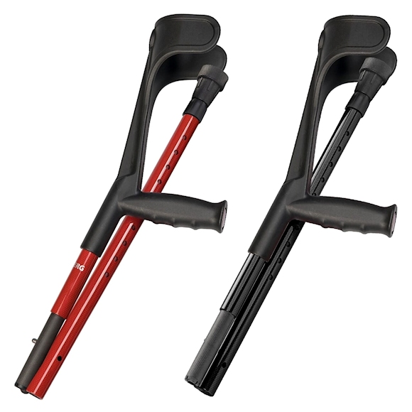 | 旅行などで折りたたみ携帯ができるカーボン製のロフストランドクラッチ。もちろん、日常使いでも公共機関での移動時に折りたたむ事で邪魔になりにくい。 カフ(オープンカフ)等の樹脂部分はグラスファイバーを使用した強化プラスチック製で安心。軽量な545g |
