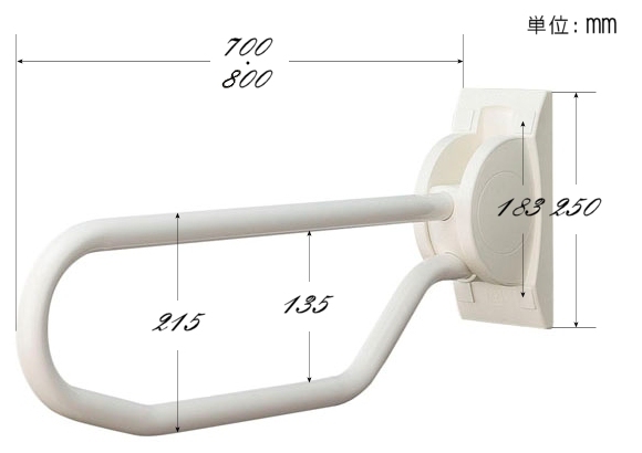| 折り上げ(はね上げる)と、介助をするときにはスペースの確保ができます。手すり材質はステンレスとスチールよる選択できます。手すりカラーは地色・白より選択できます。 |