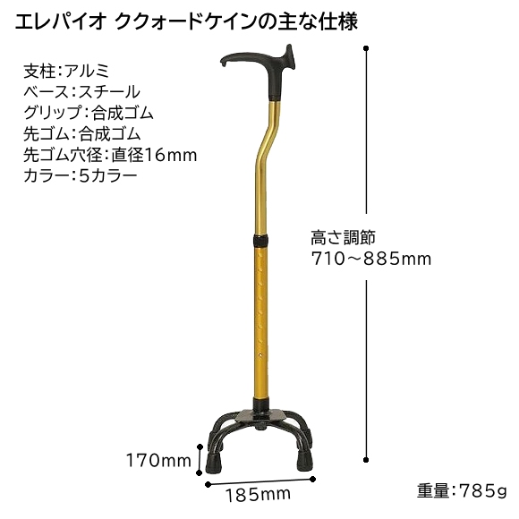 | サイズ | 高さ:710~885mm ベース:170×185mm 杖先パイプ径:16mm |