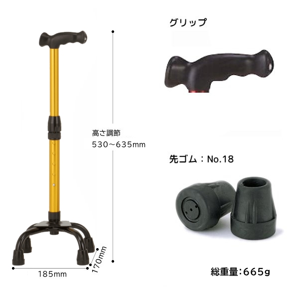 | サイズ | 高さ:530~635mm ベース:210×230mm 杖先パイプ径:16mm |